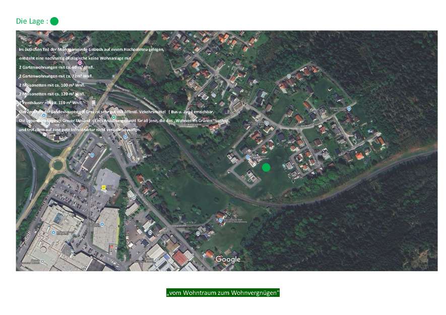 An diesem erschließungstechnisch idealen zentralen Standort in der Nähe der Autobahnabfahrt Lieboch entsteht in den nächsten 2 Jahren Bauzeit von 2025 bis 2027 eine neue Wohnanlage mit insgesamt 10 Wohneinheiten.
