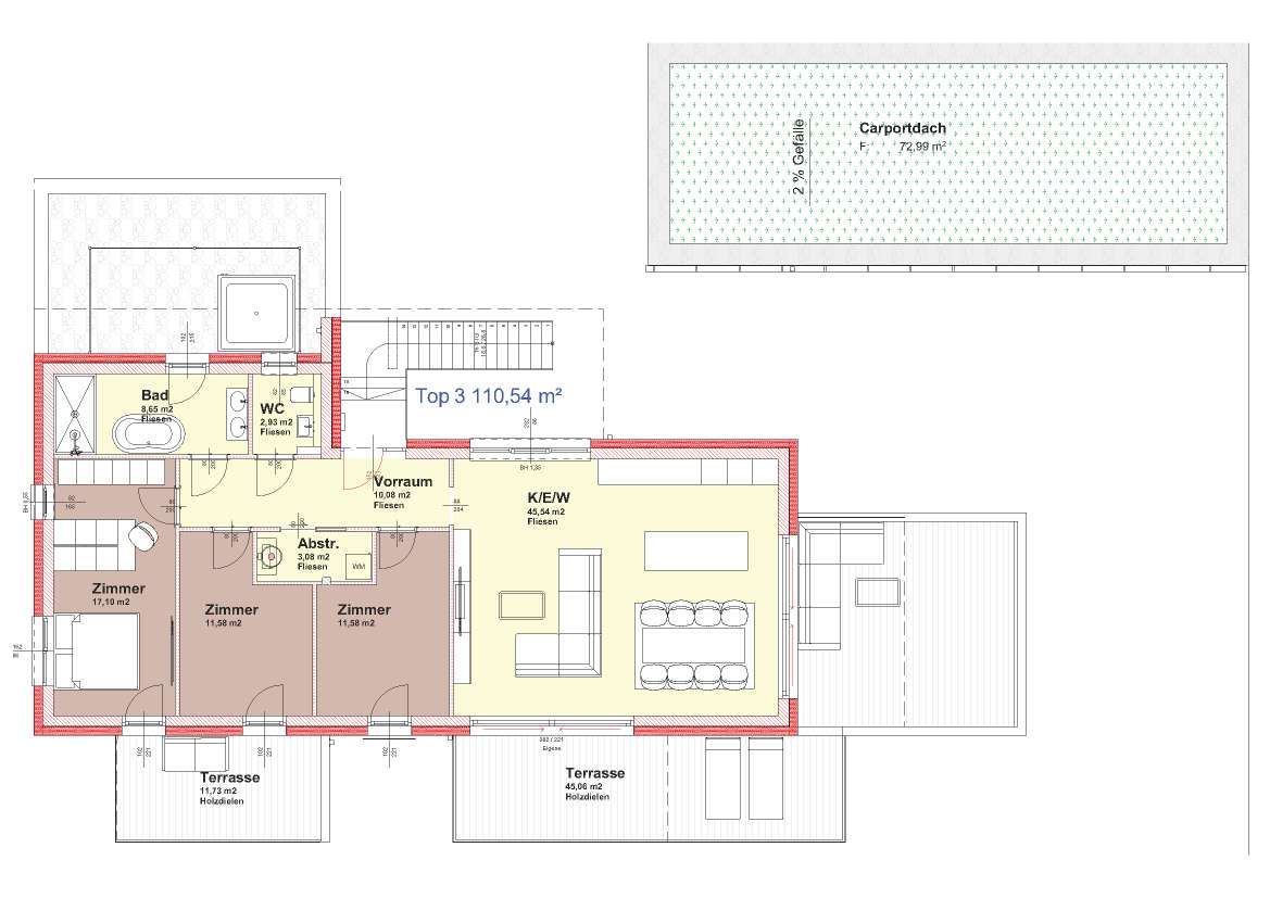 Die Plan und Massivbau präsentiert eine moderne Penthouse‑Wohnung in 8501 Lieboch, Otto‑Pexa‑Straße 6b (TOP 3) mit rund 110 m² Wohnfläche und Gartenanteil ca. 42 m². Außen schlüsselfertig mit Terrasse und sämtlichen Außenanlagen, innen belagsfertig zur individuellen Gestaltung. willhaben.at